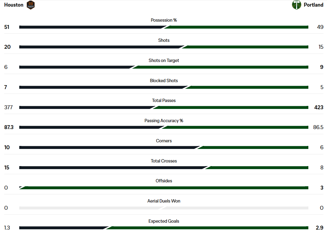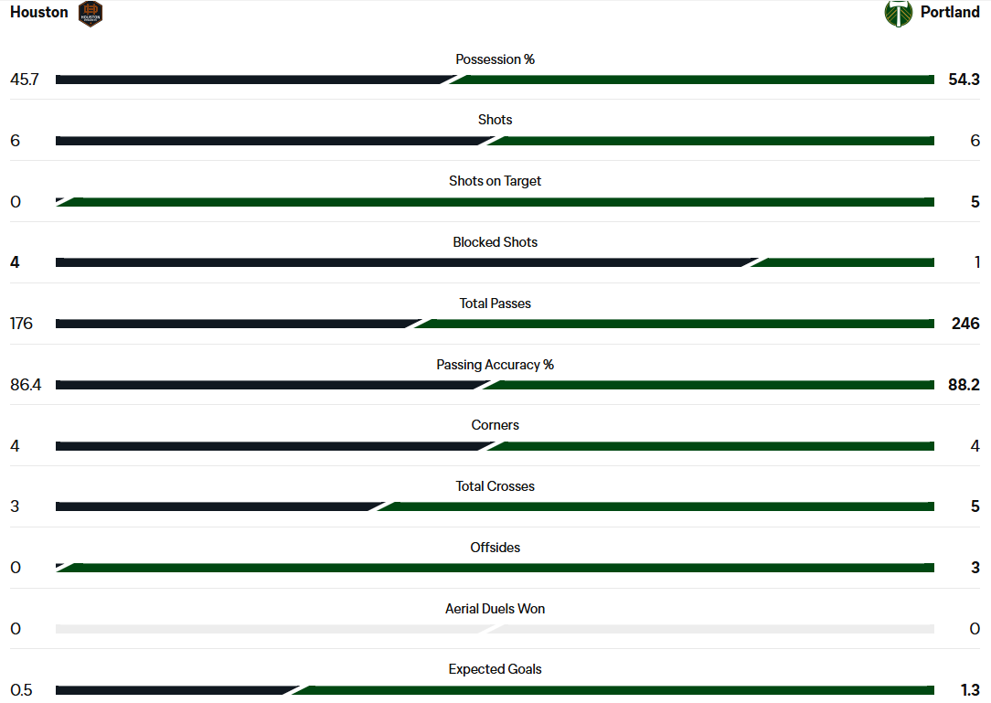 Overall the Timbers did a great job controlling the half with their possession and chance creation, and managing the danger Houston brought to the match with solid positioning off the ball and on set-pieces.