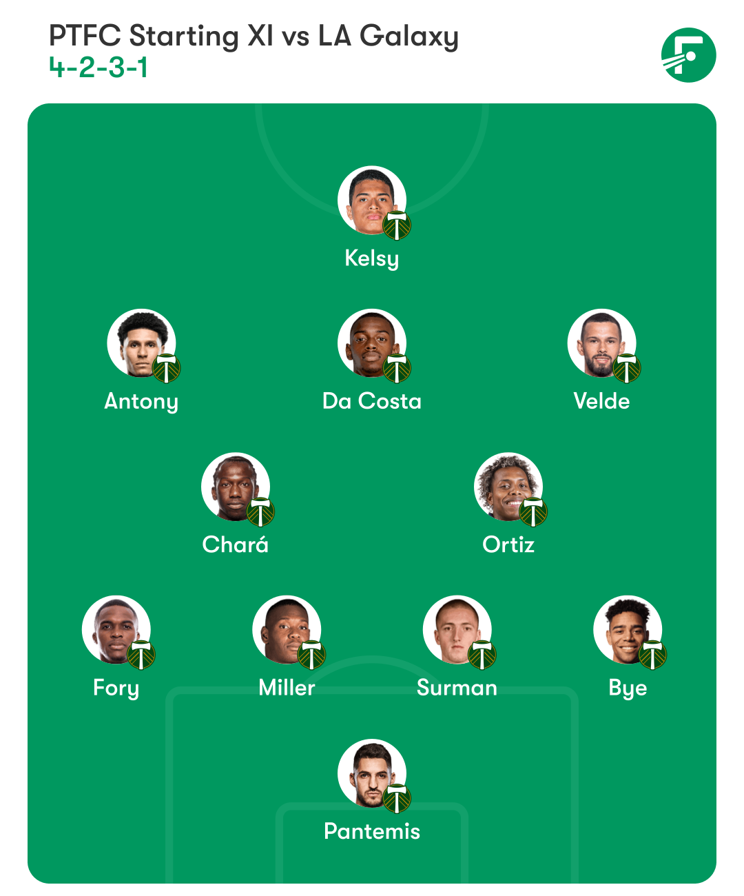 Antony returned from a one match absence to replace Ariel Lassiter in the starting lineup, swapping wings with Kristoffer Velde moving to the right. Up top, Kevin Kelsy got the nod ahead of Gage Guerra, who scored his first goal of the year in Portland's 3-2 loss to the Dynamo.