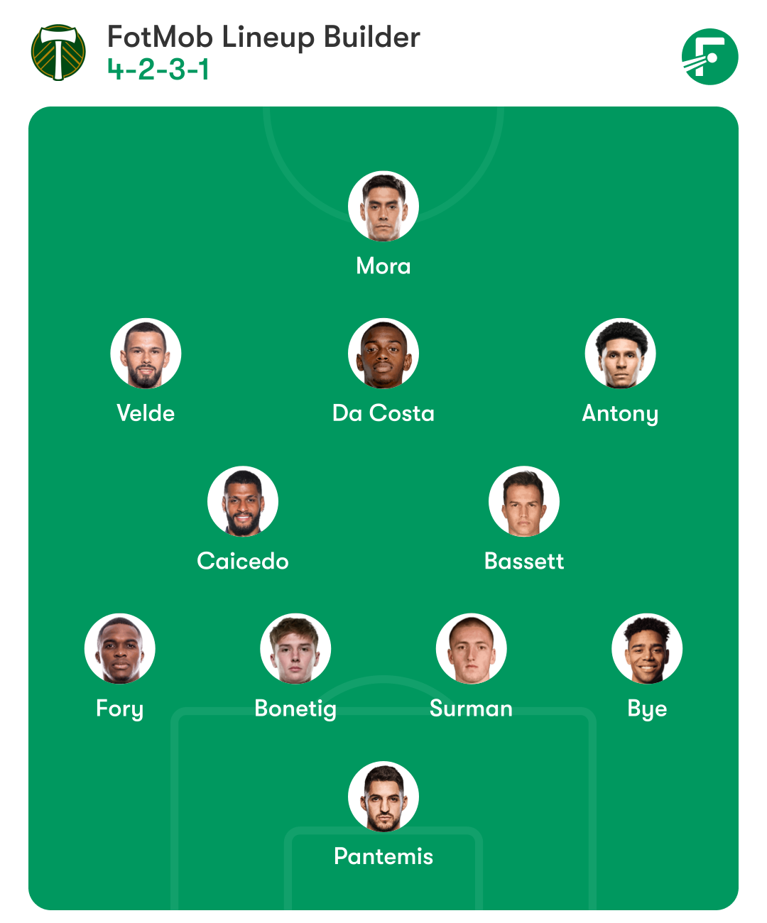 Cole Basset made his first appearance for Portland since week two, lining up alongside Jose Caicedo, who was making his Providence Park debut, in the midfield. David Da Costa started behind the front line of Kristoffer Velde, Felipe Mora, and Antony. It was the first time all season that Portland's first-choice front six were all available, fully eliminating any kind of excuses that may have been present thus far.