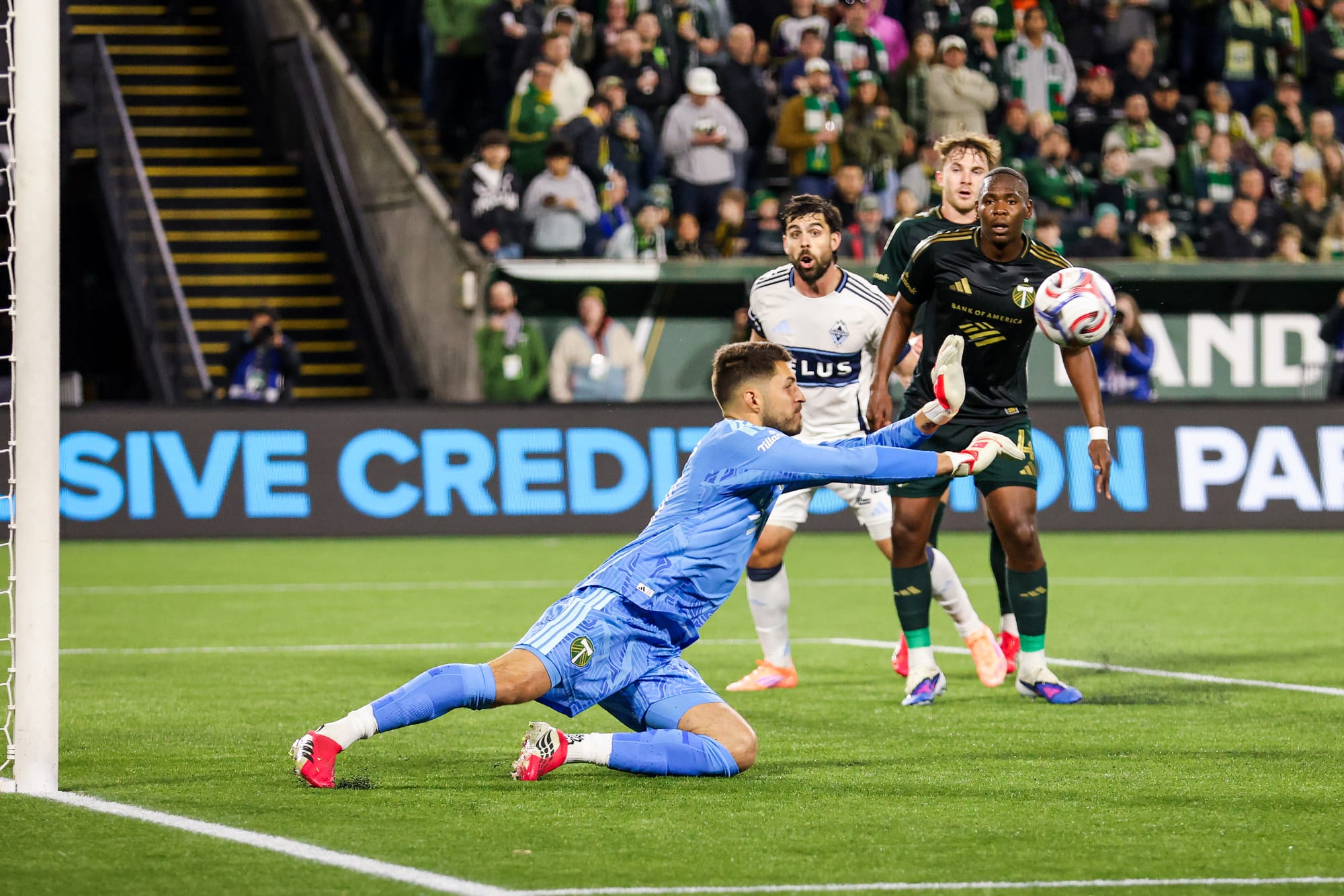 A chaotic sequence in Portland's box saw the Whitecaps launch multiple shots at goal. Pantemis managed to push a dangerous one away, but left the goal gaping. Kamal Miller was first on the scene to clear away the agonizingly bouncing ball, saving Portland from an even worse deficit.