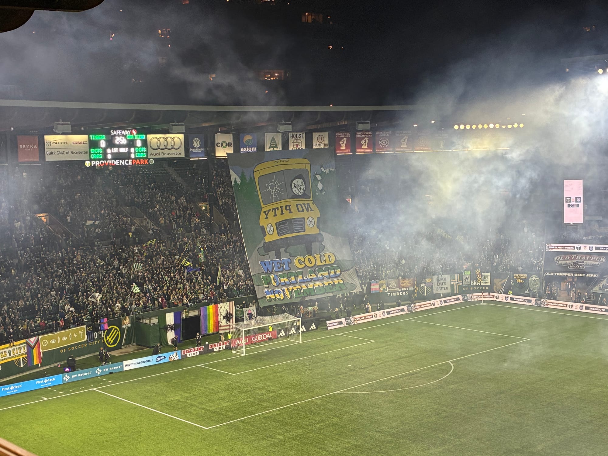 With the Park seeing it's first non-Wild Card playoff game action since 2021, the Timbers Army met the moment with a beautiful tifo display paying homage to the "Wet, Cold, Portland November".