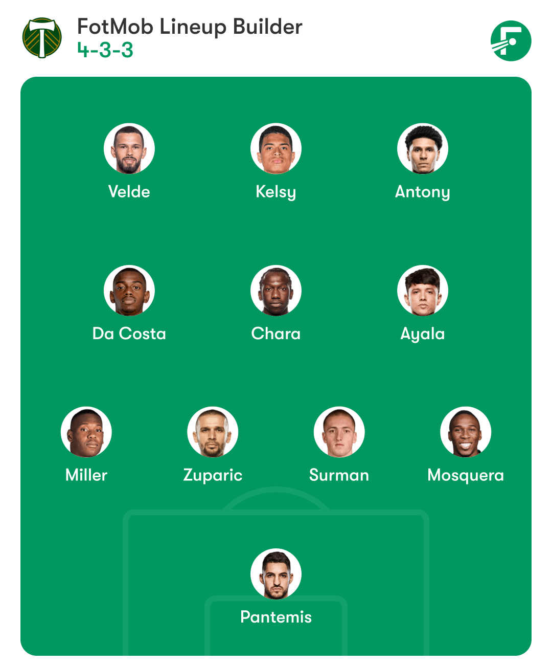 Phil Neville made three changes to his starting XI, two out of necessity and one out of potential opportunity. Jimer Fory was serving his suspension after being shown a red card in Game One, and Neville went with experience at and inserted Kamal Miller. Dario Zuparic slotted into K. Miller's usual CB spot next to Finn Surman. Up top, Kevin Kelsy got the nod over Felipe Mora, in the hopes that Portland could get goals from the starting striker spot again.