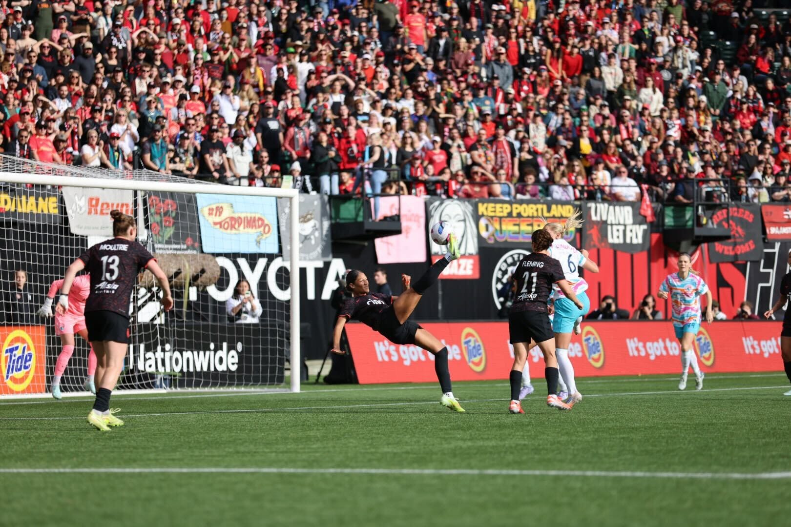 On a rare sunny and crisp afternoon in Portland, the Thorns hosted the Wave at a packed Providence Park. After a chaotic weekend of playoff games, 19,309 fans showed out hoping for a clean and straightforward win over their West Coast opponents. But, in typical NWSL Playoff fashion, nothing was predictable about this matchup. For 92+ minutes, the game was scoreless and Portland fended off chance after chance from San Diego. The turnovers in the middle of the park were relentless and led to the disparate possession statistics. But as soon as the whistle blew for extra time, everything changed. Portland stepped onto the pitch for 30 more minutes a changed team, ready to show everyone what they were made of.