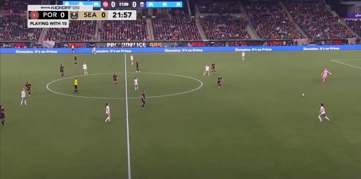 Unlike the 4-4-2 the Thorns used in game one, this time coach Robert Vilahamn used a 4-2-3-1 with Jessie Fleming and Cassandra Bogere as a double pivot. Mimi Alidou, Olivia Moultrie and Reilyn Turner were behind Pietra Tordin, who started as the number nine.